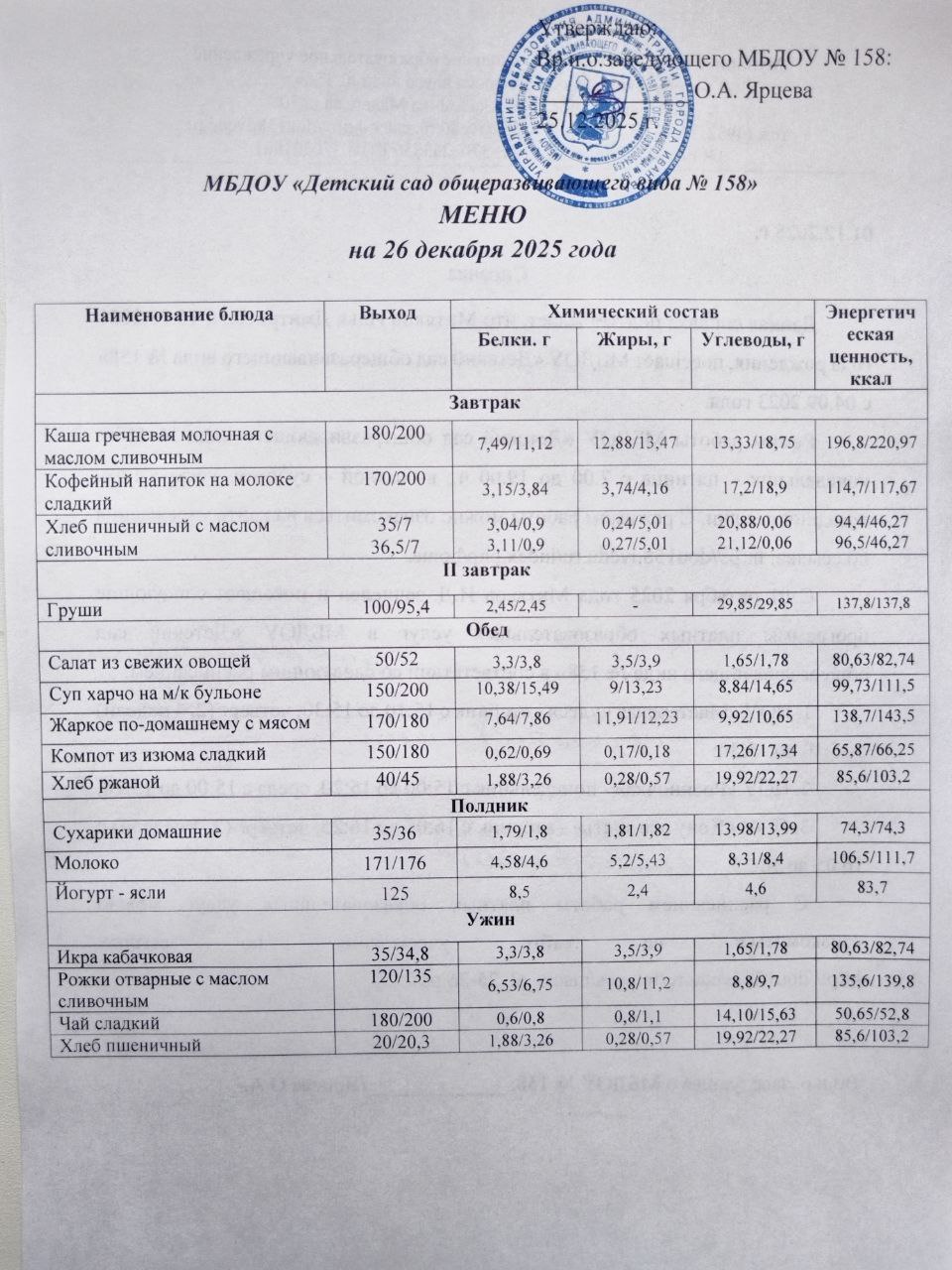 Меню на 26 дек 2025