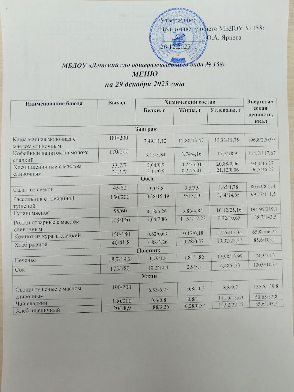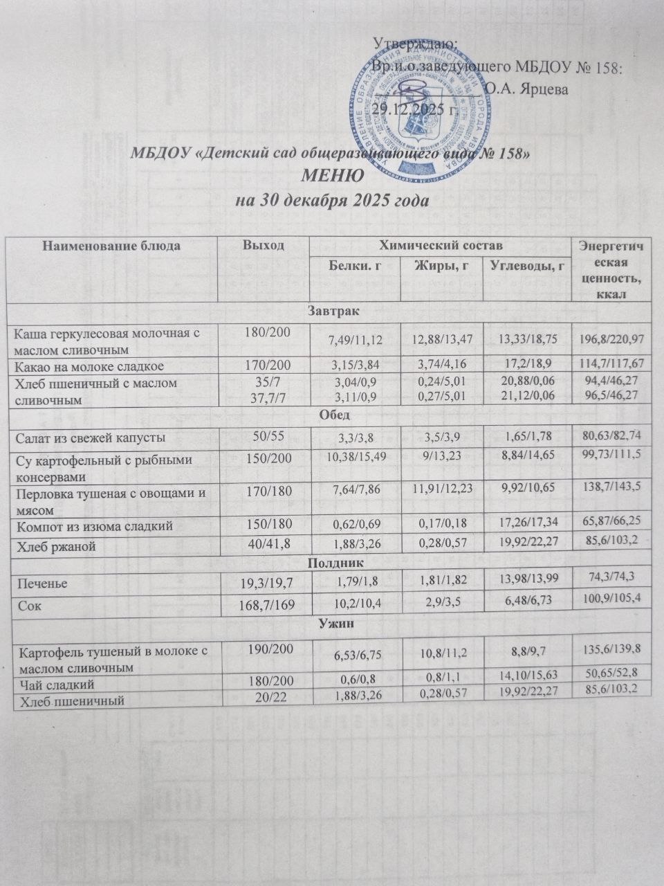 Меню на 29 дек 2025